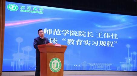 师范学院院长王佳佳在解读“教育实习规程”时提出,要“正衣冠”明确身份转换、“沉下心”深耕课堂细节、“动真情”关爱学生、“守底线”确保实习平安。