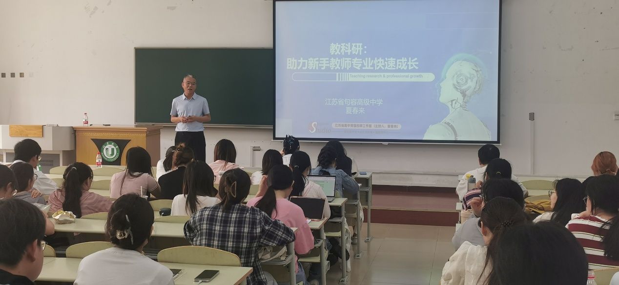 6月24日下午,在京江教学楼2218,江苏省句容高级中学特级教师夏春来应邀为外国语学院师生作题为“教科研:助力新手教师专业快速成长”。讲座由外国语学院副院长李加军主持,外国语学院青年教师、师范生研习指导教师和英语(师范)专业2022级全体本科生参加。
