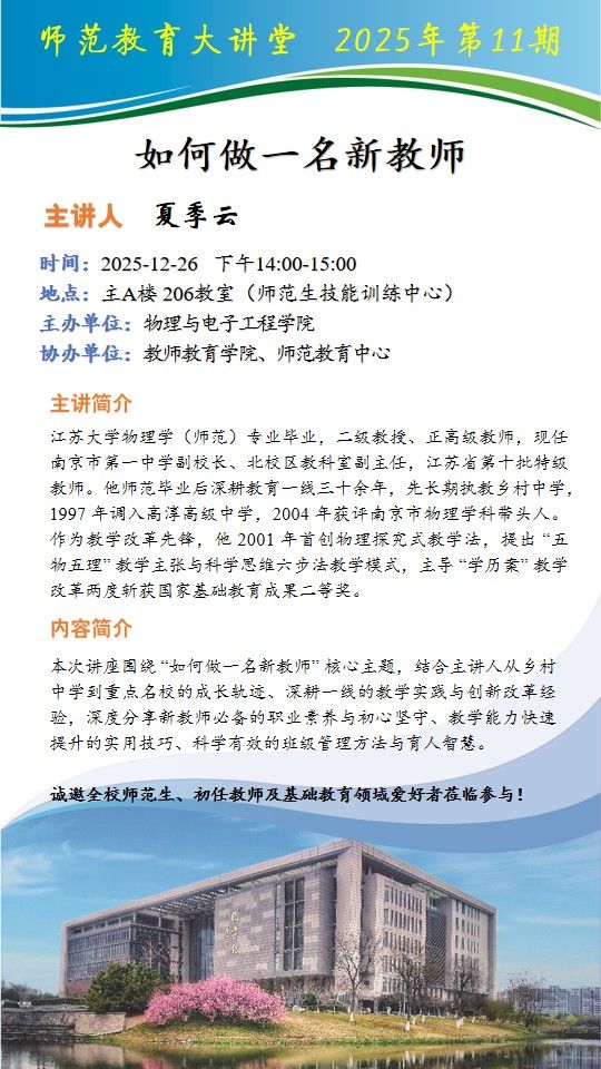 上一条:【师范教育大讲堂】 物电学院开展“如何做一名新教师”专题讲座 下一条:【师范教育大讲堂】“双新驱动·AI赋能” 化学(师范)专业邀请中学名师开讲教学创新与素养育人